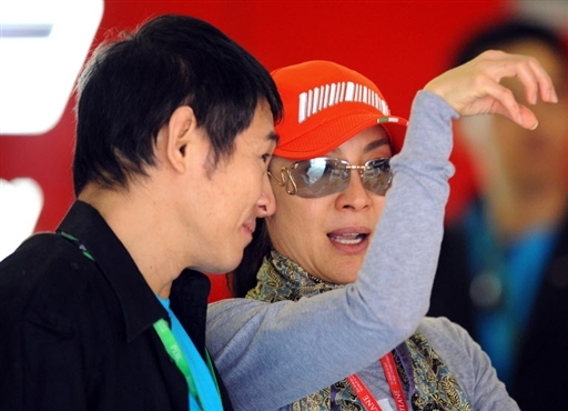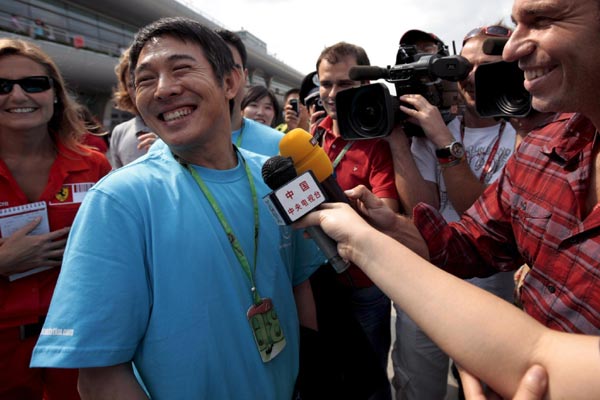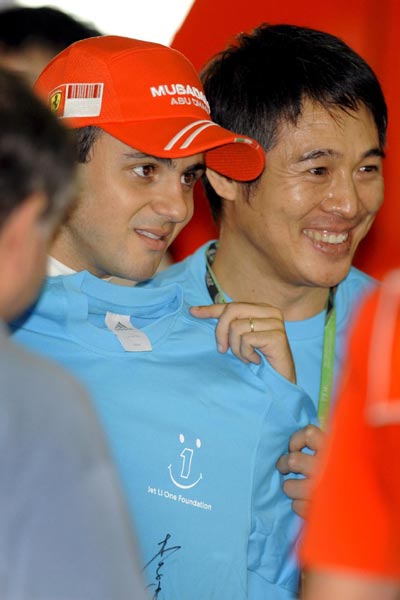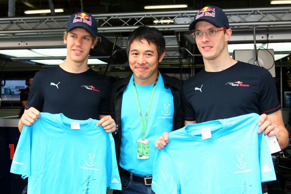 りんちぇは中国で初めてのF1(上海)の練習に顔を出し、選手にTシャツのプレゼントを